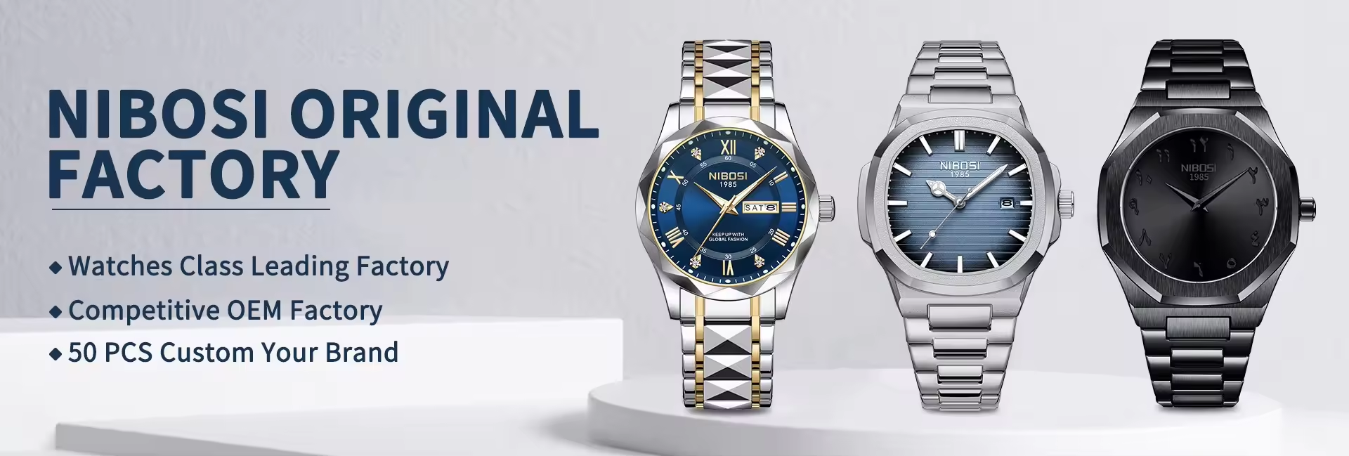 Founded in 2012,Shenzhen South America (NIBOSI Brand) Watch Co., LTD is a manufacturer of watch with well-equipped testing facilities and strong technical force.The company has more than 100 employees and has a complete system of design, testing, production, assembly, quality inspection, and sales. The company owns the international mid-to-high-end watch brand NIBOSI. NIBOSI always adheres to its excellent quality, and with its own strong technical strength, it continues to develop products with higher quality, better performance, and more perfect designs to give back to customer.