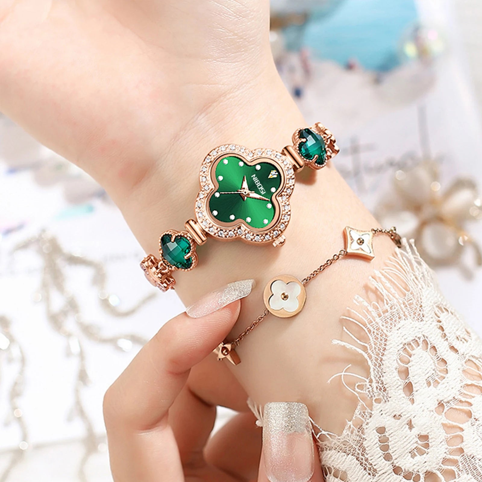 NIBOSI 2617L Four-leaf Bracelet Lady Watches Luxury Design 2023 Vintage Women Watch